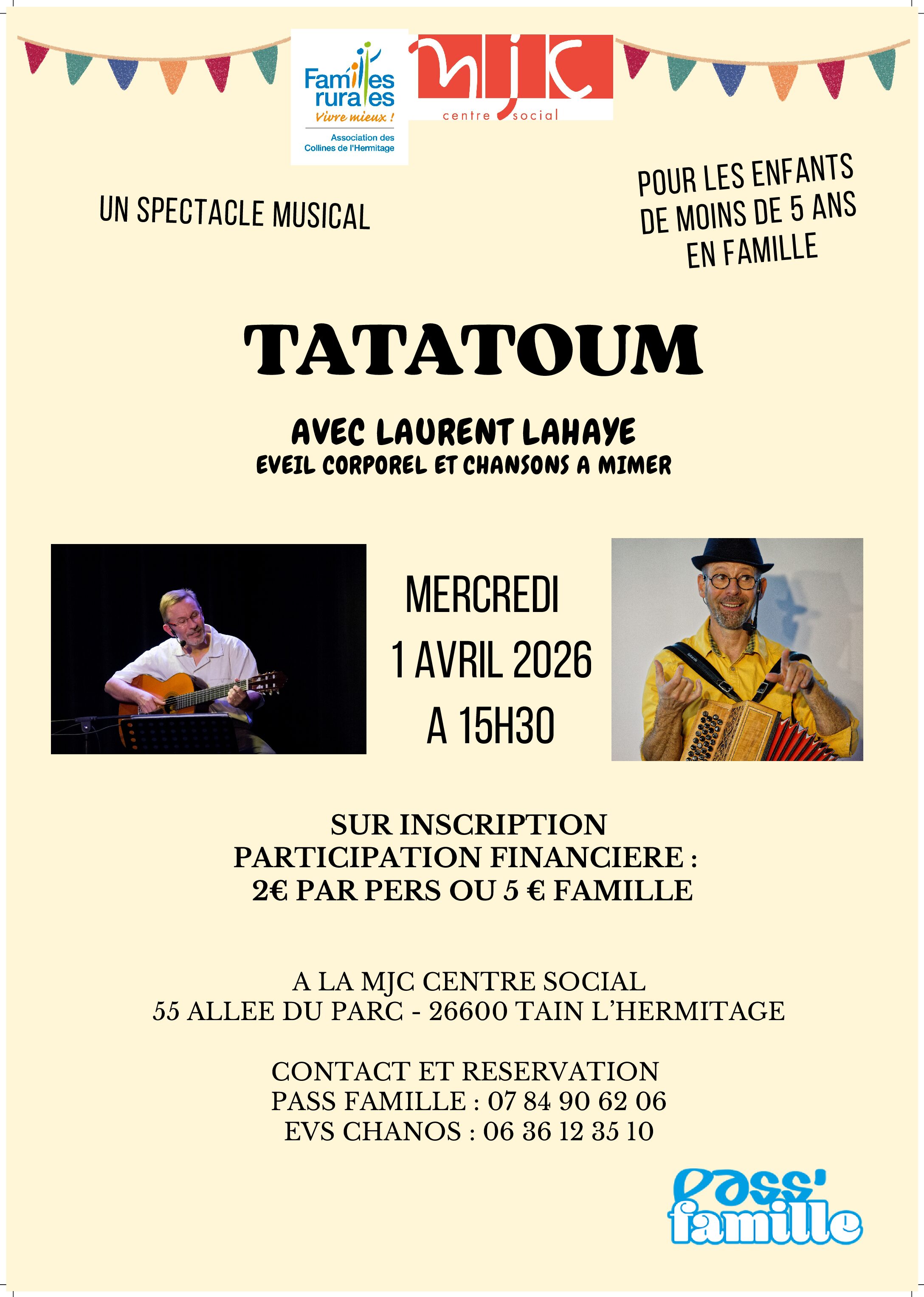 TATATOUM – avec Laurent LAHAYE – Mercredi 01 Avril à 15h30